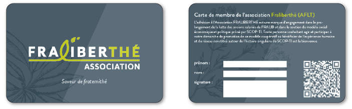 L’adhésion à l’Association FRALIBERTHE est une marque d’engagement dans le prolongement de la lutte des anciens salariés de FRALIB et dans le soutien du modèle social économique et politique prôné par SCOP-TI. Toute personne souhaitant agir et participer à notre démarche de promotion de ce modèle coopératif ou bénéficier de l’expérience humaine et du réseau constitué autour de l’histoire singulière de SCOP-TI est la bienvenue.